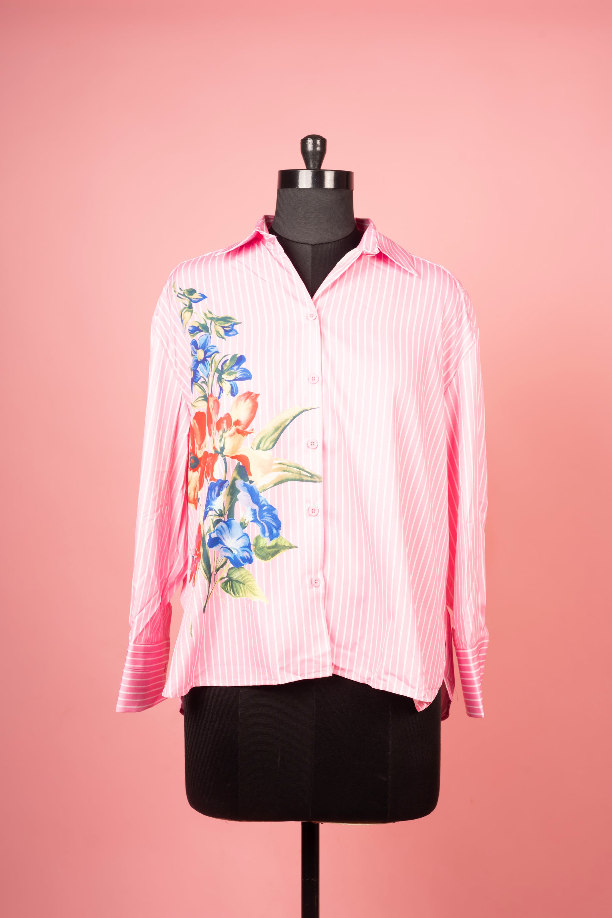 The Verdura Stripe Shirt blends classic tailoring with artful flair, bringing a refreshing update to your everyday style. Designed with crisp vertical stripes and a bold floral motif, it strikes the perfect balance between structured sophistication and playful charm. The relaxed fit and lightweight fabric ensure comfort and ease of movement, while the turn-up cuffs and contrasting details add a refined, effortlessly chic touch.